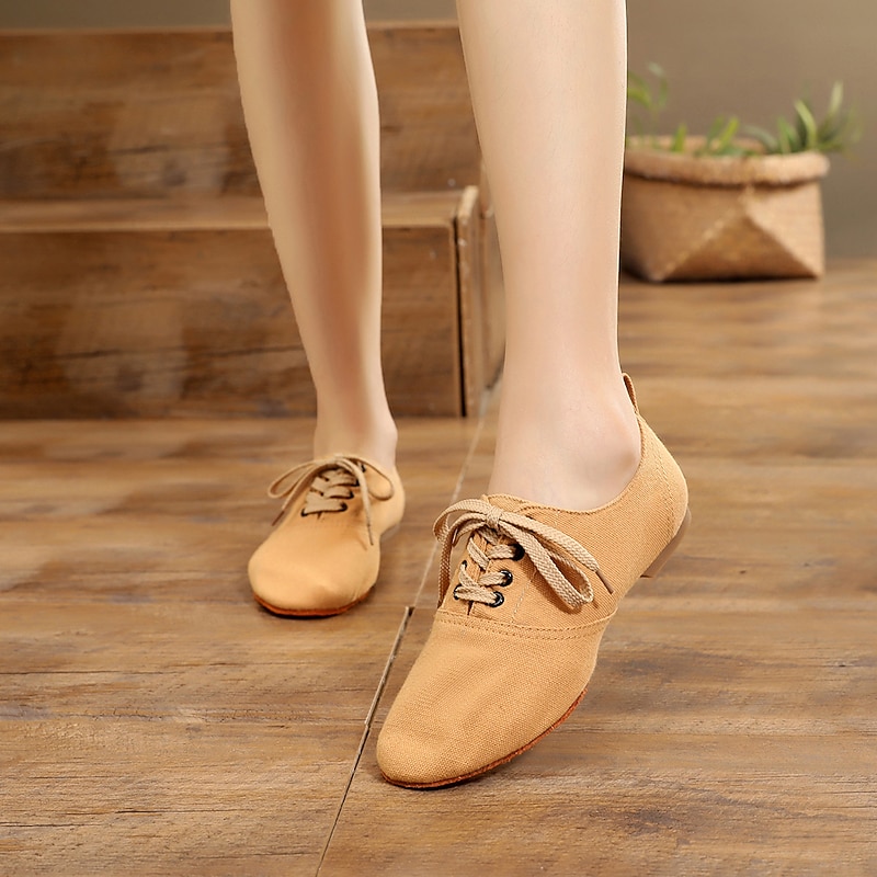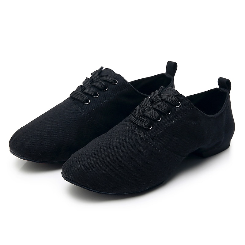 Women's Black Canvas Jazz Dance Shoes with Lace-Up Design – snug and Lightweight Footwear for Jazz, Ballroom, Latin, and Social Dance