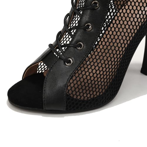 SWDZM Ballroom Dance Ankle Boots for Women Open Toe Mesh Dancing Heels Boots 5