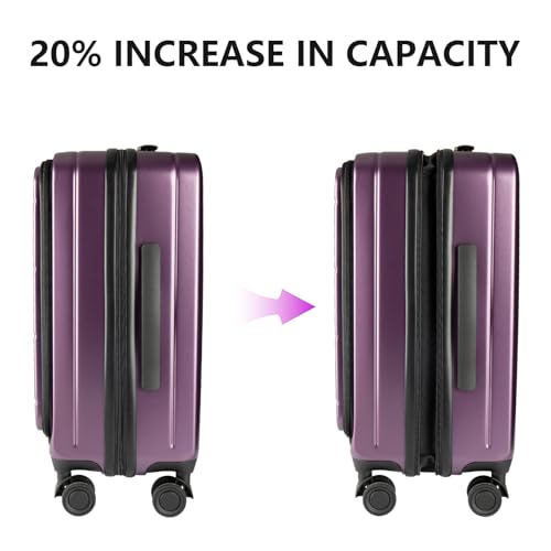 HOT ! 20-Inch Hardshell Carry-On Luggage with TSA Lock,Cup Holder, 360° Silent Spinner Wheels & Front Pocket - Lightweight suitcase for Business Travel, With Extensible Layer(Purple)