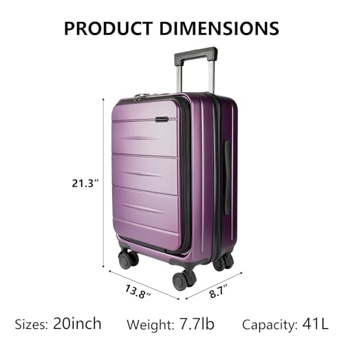 More information about 20-Inch Hardshell Carry-On Luggage with TSA Lock,Cup Holder, 360° Silent Spinner Wheels & Front Pocket - Lightweight suitcase for Business Travel, With Extensible Layer(Purple)