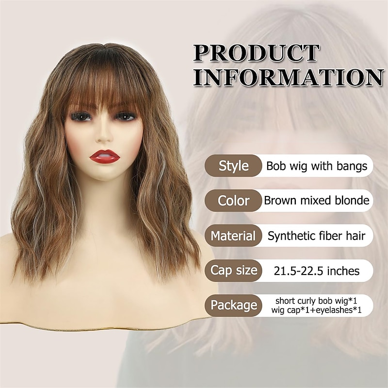 $19.99 - Short Brown Bob Wigs with Bangs Medium Length Brown Mixed Blonde Wigs for Women Wave Curly Synthetic Hair Wigs with Highlights 2025. Shop for cheap Synthetic Trendy Wigs online? Buy at lightinthebox.com on sale today!