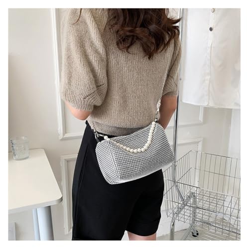 Shoulder Bag Metal Zipper Portable Bright Diamond Pearl Handle Messenger Bags 5