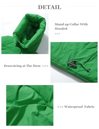 • Features: This lightweight and loose-fit bubble coat features a zipper easy to put on and take off, half button-down closure, along with a padded hood and a warmly padded stand-up collar can cover a woman's head、ears and neck. The elastic cuffs keep warm and windproof. It also has two side pockets and one inner. Despite being soft and warm, it is not overly puffy.