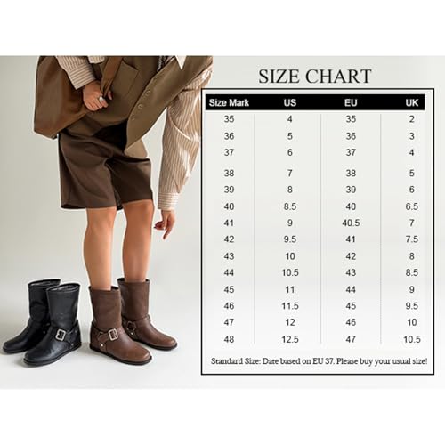 • ADJUSTABLE BUCKLE RIDING BOOTS:Designed with buckle straps for customizable tightness, these biker boots for women accommodate high insteps comfortably. The slip-on design with adjustable features ensures easy wear while keeping your feet securely in place - perfect for motorcycle-inspired fashion.