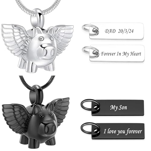 Minicremation Cremation Jewelry Urn Necklace for Ashes, Flying Pig Memorial Pendant Made of 316L Stainless Steel, Keepsakes Locket four Colors Can be Choose. 1