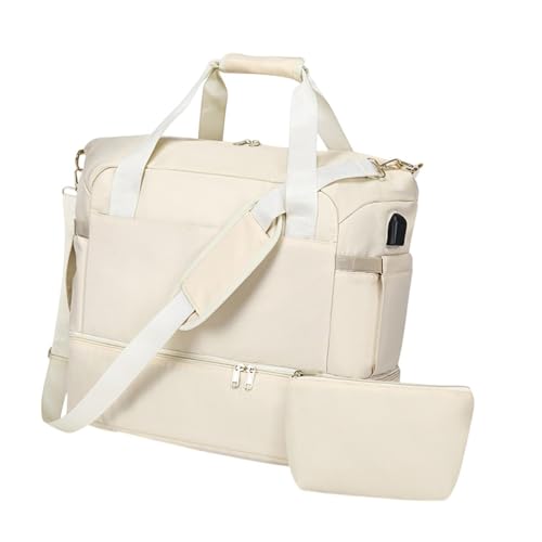 sought-after ! Gym Bag Travel Duffle Bag Shoulder Bag Luggage Lightweight with Wet Pocket Weekender Bag for Traveling Workout Trip Exercise(White)