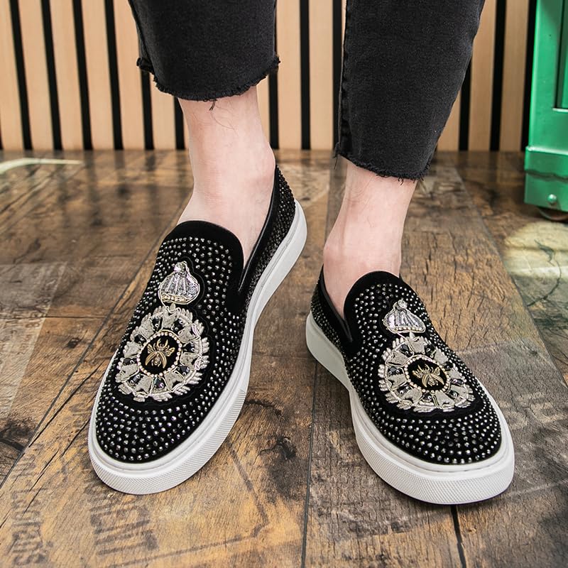 2025 New Men Tide Leather Casual Shoes Fashion Luxury Embroidery Twinkling Rhinestone Flat Shoes Leisure Sneakers Loafers 7