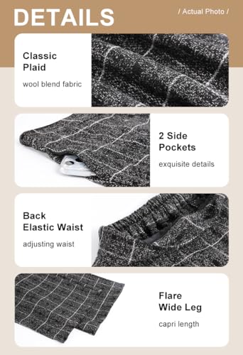 chouyatou Women's Winter High Waist Wide Leg Plaid Wool Blend Palazzo Capri Pants Culottes with Pockets 4