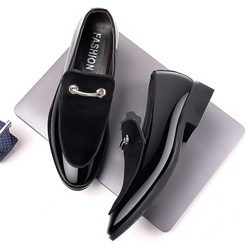 Men's Fashion Patent Leather Slip on Dress Loafers Business Casual Formal Tuxedo Shoe Party Wedding Velvet Penny 6