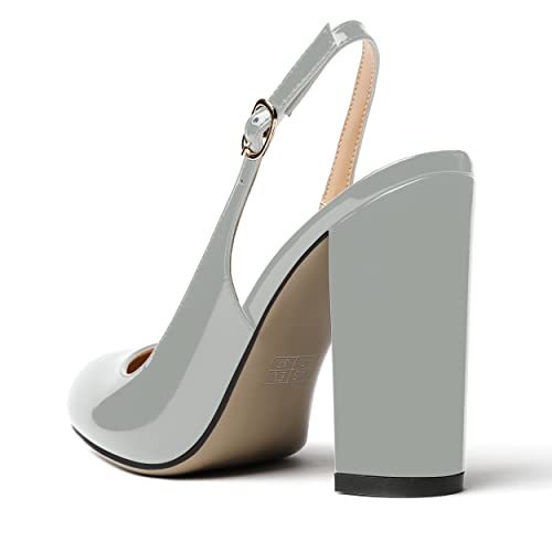 MODENCOCO Women's Patent Fashion Round Toe Buckle Slingback Sexy Wedding Block High Heel Pumps Shoes 4 Inch 4