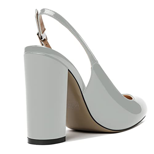 MODENCOCO Women's Patent Fashion Round Toe Buckle Slingback Sexy Wedding Block High Heel Pumps Shoes 4 Inch 3