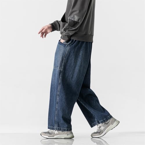 Seidarise Men's Work Jeans Casual Hip Hop Cargo Solid Color Loose Fit Straight Wide Leg Cotton Denim Pants with Zipper 4