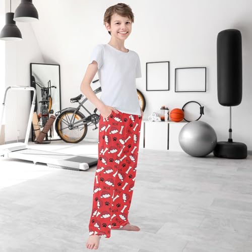 HOT ! Boy's Lounge Pants Santa Hats Paw Bone Kids Jogger Pants Elastic Waist Long Bottoms with Pockets 6-14 Years