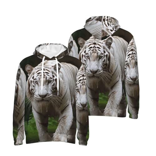 Men's Fleece Pullover Hoodie Long Sleeve Hooded Majestic White Bengal Tiger Sweatshirt Casual Shirts With Pockets 1