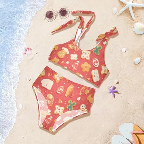 KLL Gingerbread Cookies Coral Girls 2 Piecing Bikini Set Beach Swimsuits Swimming Suits Adjustable Strap 2