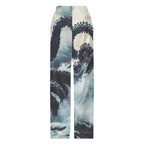 Sea Monster Octopuss Tentacles Fangs Womens Mens Pajama Pants Lounge Sleep PJ Bottoms with Pockets 7