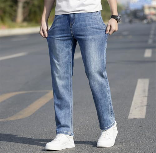 HOT ! Men Relaxed Fit Stretch Denim Pants Breathable Cotton Blend Straight Leg Daily Jeans