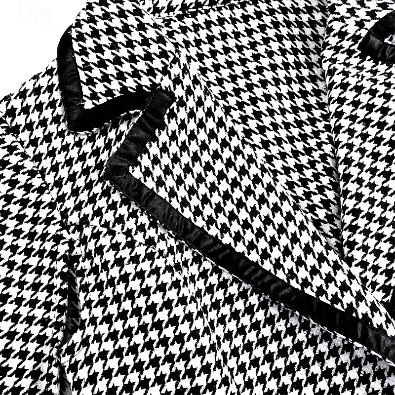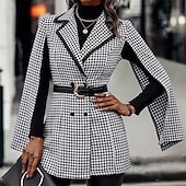More information about Women's Blazer Comfortable Pocket Elegant Fashion Outdoor Lattice Going out Casual Daily Weekend Cardigan Regular Lapel Regular Fit Long Sleeve Outerwear Black And White Spring Fall