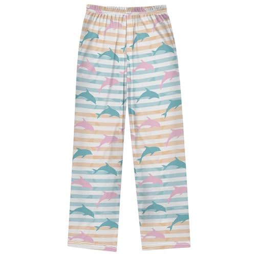 Boy's Pj Pants Pink Green Dolphins Swim Stripe Lounge Bottoms Elastic Waist Kids Joggers with Pockets Size 6-14 6