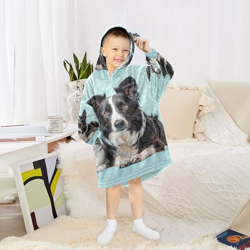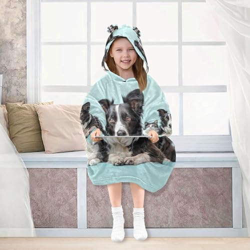 Border Collie Puppy Dog Cat Kids Wearable Blankets Teen Girls Comfy Animal 3D Print Boys Oversized Hoodie Sweatshirt 4