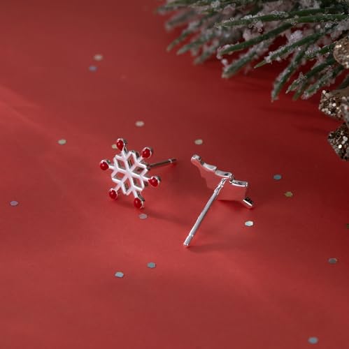 Reffeer Solid 925 Sterling Silver Christmas Tree Studs Earrings for Women Teen Girls Snowflake Studs Earrings Asymmetric Christmas Earrings