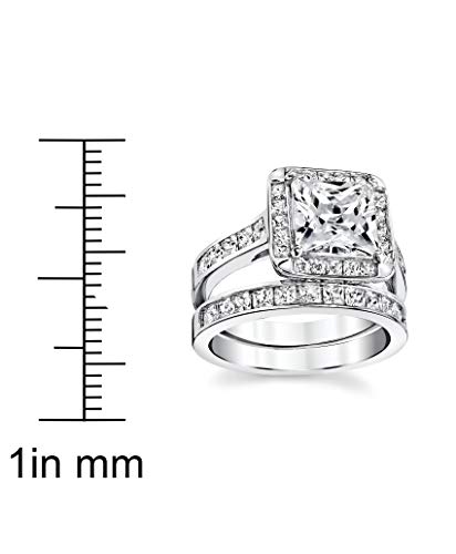 Metal Masters Co. Women's Sterling Silver 925 Bridal Set Engagement Rings 2.5 Carat Princess Cut Cubic Zirconia 5-9 3