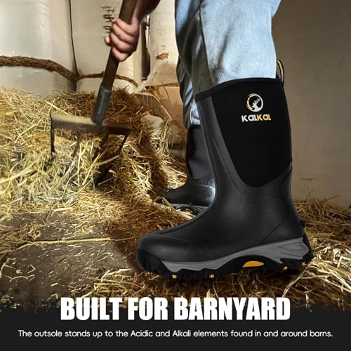 HOT ! Kalkal Rubber Boots for Men, Waterproof Mid Calf Rain Boots with Comfortable Sports Outsole, 6mm Neoprene Insulated Rubber Work Boots - Garden Farm Mud Boots (Size 7-14)