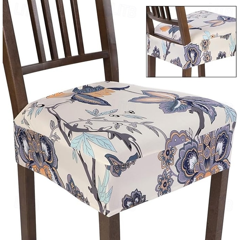 Floral Seat Covers for Dining Room Stool Chair Cover Geometric Printed Polyester Slipcovers 4