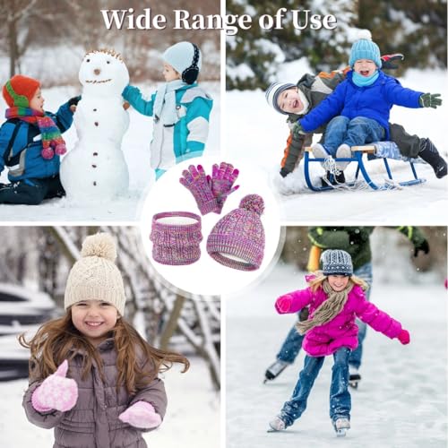 More information about Knitted Winter Hat, Scarf & Gloves Set For Boys & Girls, Fleece Lined Thermal Gloves, Beanie And Neck Warmer, Ages 5-12