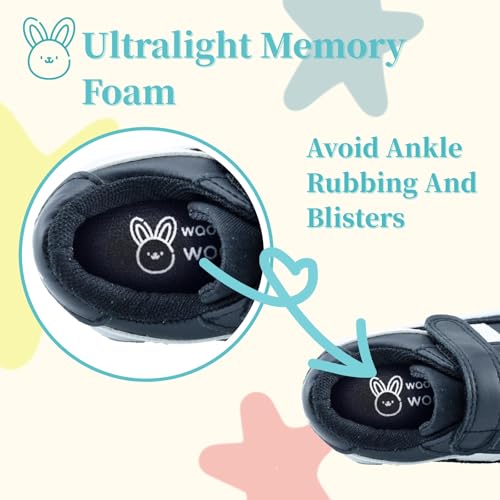 waddle wonder Toddler Shoes for Boys & Girls Hook and Loop Casual Lightweight Non-Slip iconic Leather Black Outdoor Tennis Walking Sneakers