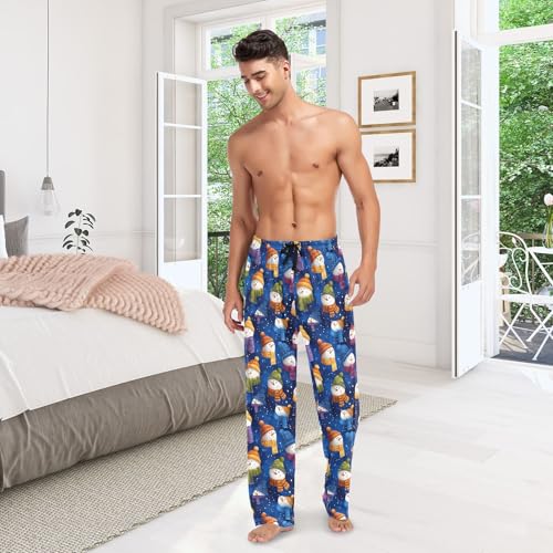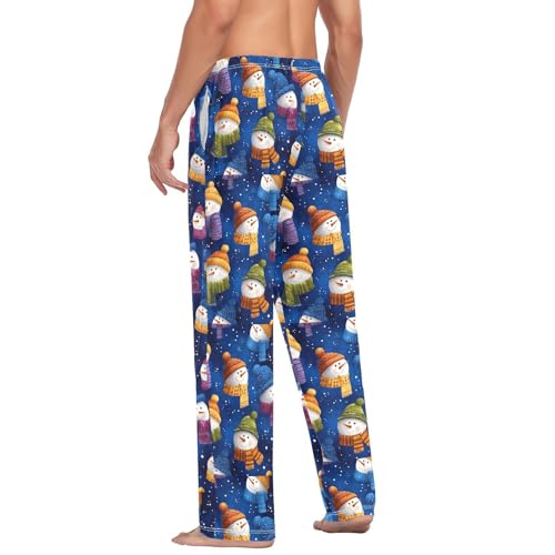 HOT ! Snowman Wearing Scarf Men's Pajamas Pants Cotton Sleep Bottoms Pants Lounge Sleepwear - S