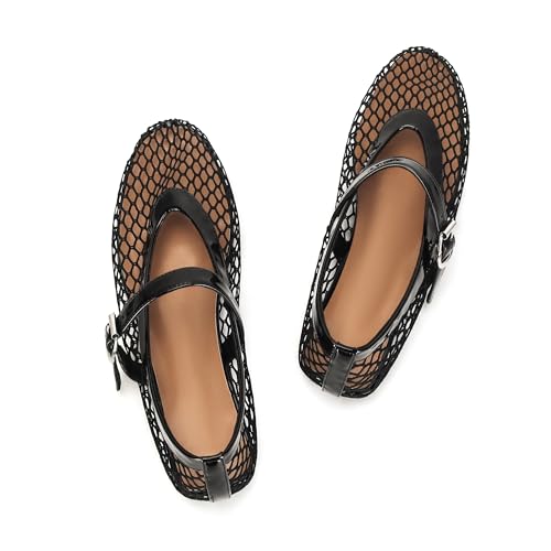 Mesh Ballet Flats for Women Ballerina Mesh Shoes Mary Jane Flats Sandals Fishnet Buckle Strap Round Toe Comfortable Casual Office Summer Dress 6