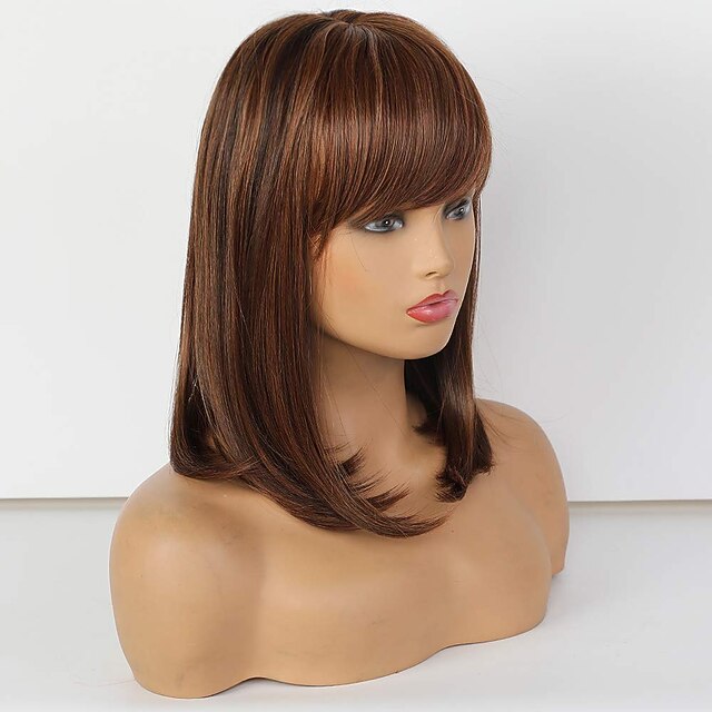 $117.99 - Brown Medium Length Wig with Bangs 2025. Shop for cheap Human Hair Capless Wigs online? Buy at lightinthebox.com on sale today!