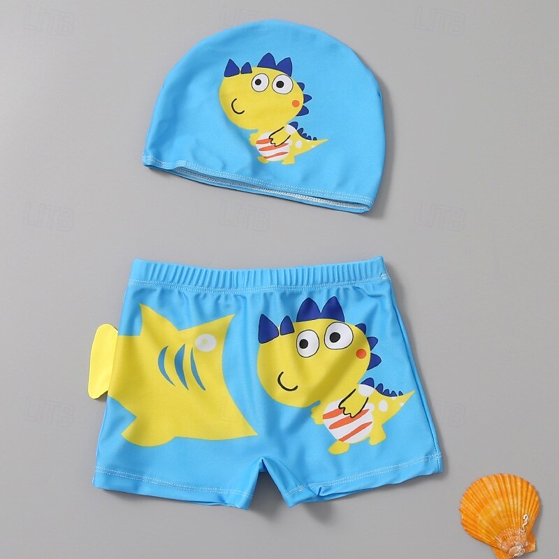 Kids Boys Swimsuit Animal Short Sleeve Beach Vacation Yellow Summer Clothes 4 years+ 1