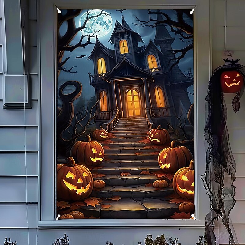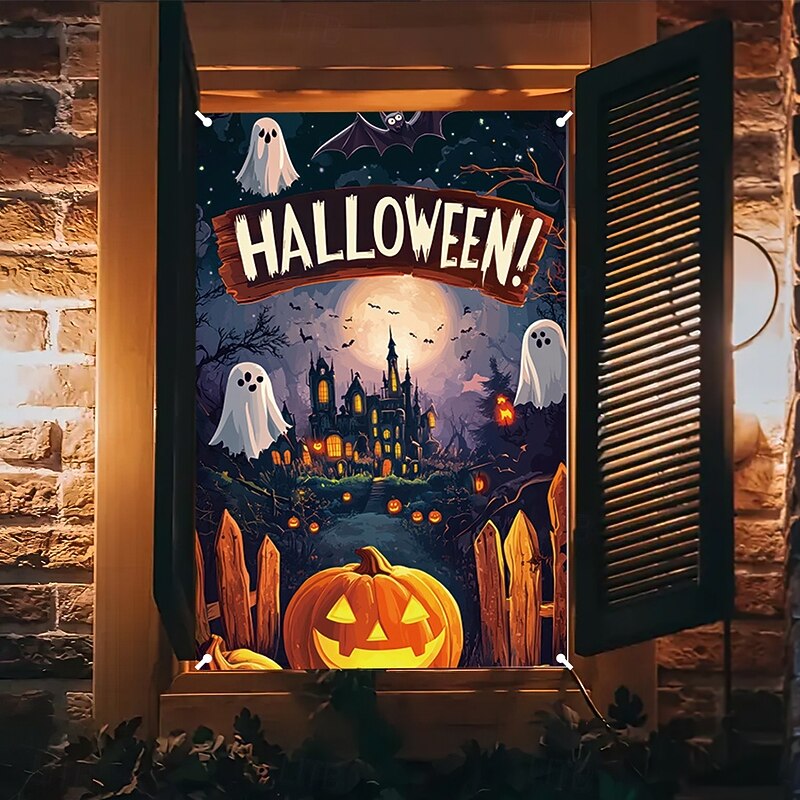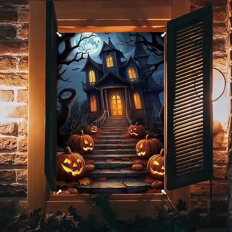 $15.49 - Halloween Window Cover Decorations, Fabric Purple Pumpkin Halloween Curtain Horror Movie Poster Window Door Covering Decor for Haunted House, Scary Halloween Window Clings Decals Indoor Outdoor 2025. Shop for cheap Halloween Wall Tapestries online? Buy at lightinthebox.com on sale today!