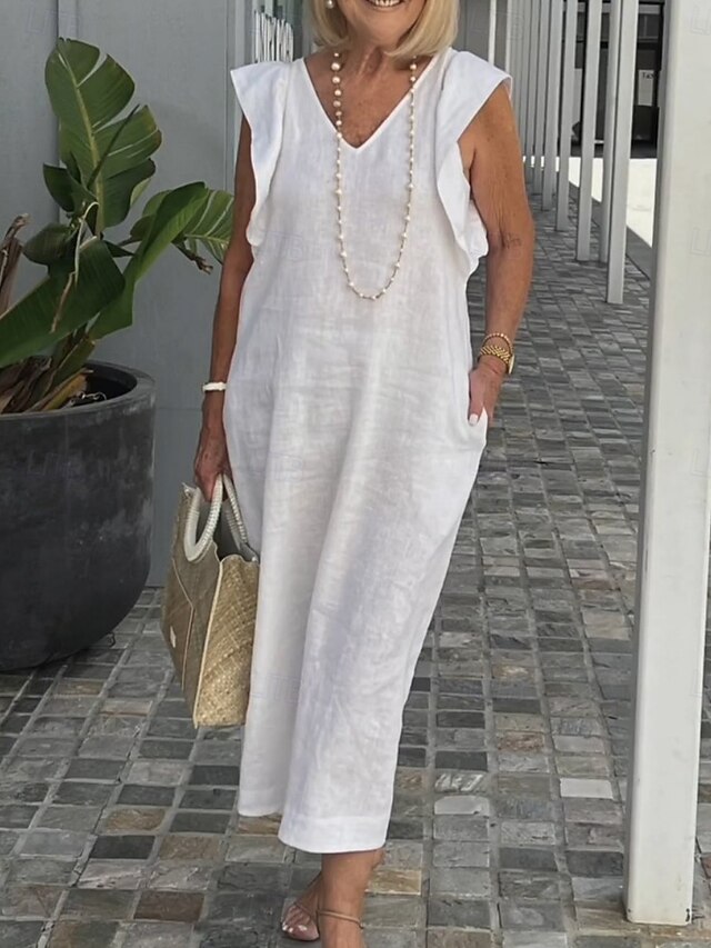 This Women's Maxi Dress Linen-Inspired Dresses Casual Dress Tank Dress sleek Basic Casual Vacation Daily Regular Fit Plain Sleeveless V Neck White Navy Blue Apricot Summer Spring combines elegant design with practical functionality. Every detail has been carefully considered to ensure you get the best possible experience. The excellent construction means this product will serve you well for years to come.