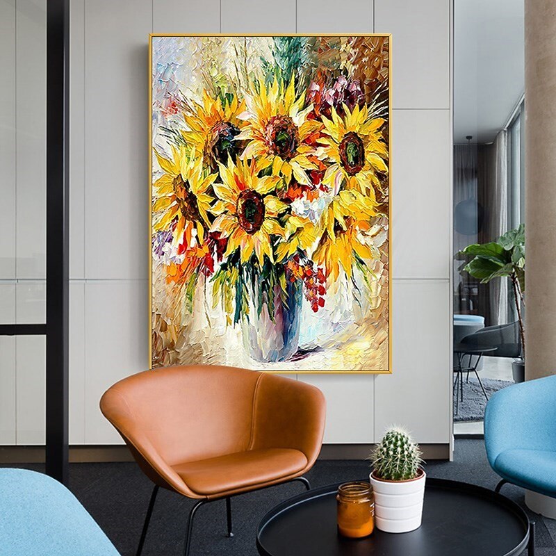 More information about Mintura Handmade Oil Painting On Canvas Wall Art Decoration Modern Abstract Picture Sunflower For Home Decor Rolled Frameless Unstretched Painting