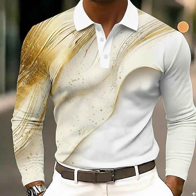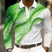 More information about Men's Abstract Geometic Polo Long Sleeve Polo Shirts Lapel Business Casual Outdoor Athleisure Daily Wear 3D Print Buttons Spring Fall Winter Blue Gold Green