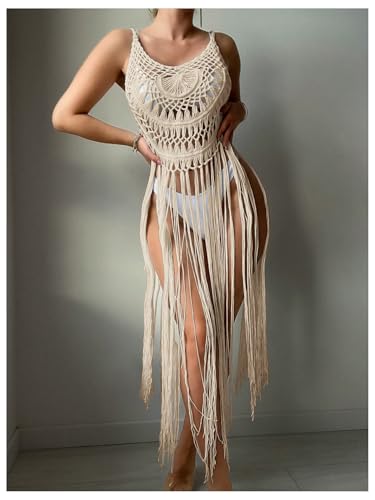 HOT ! MakeMeChic Women's Crochet Fringe Cover Up Top Sleeveless Hollow Out Summer Beach Coverup