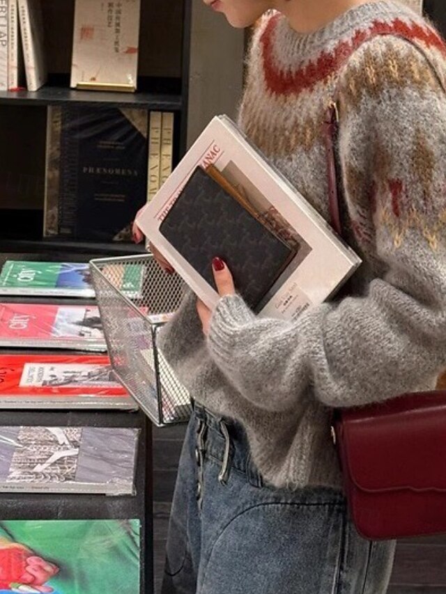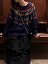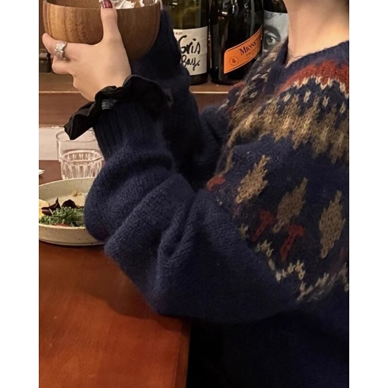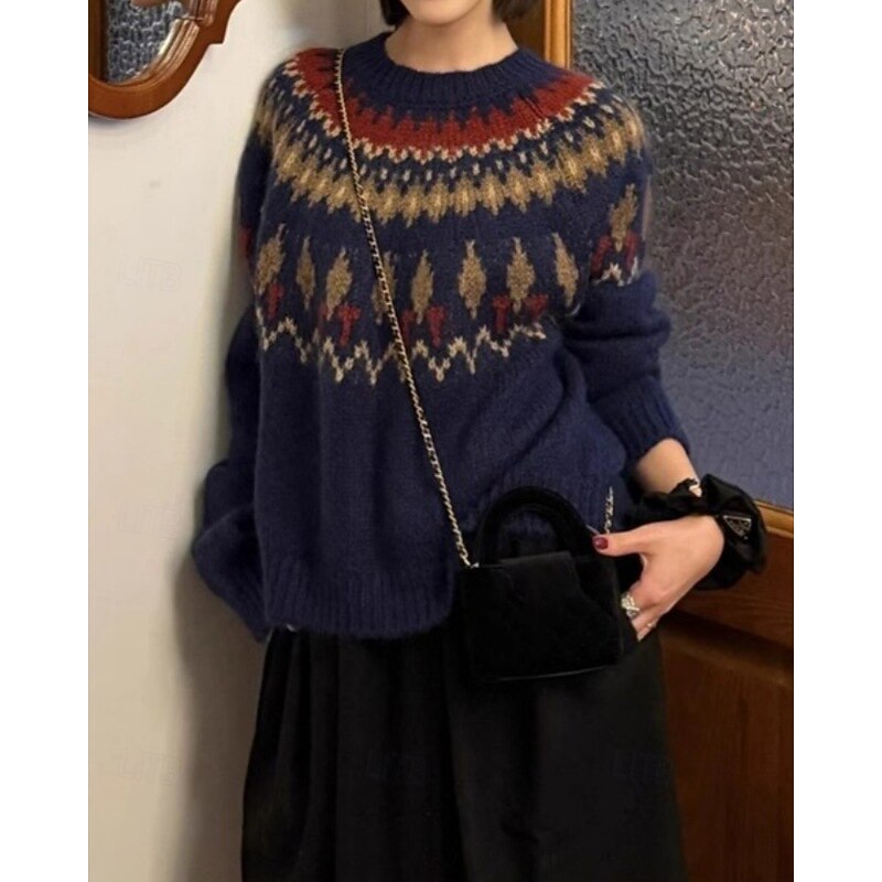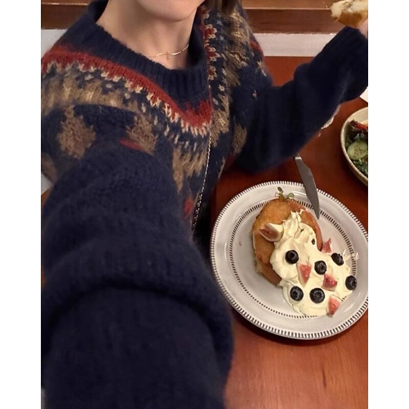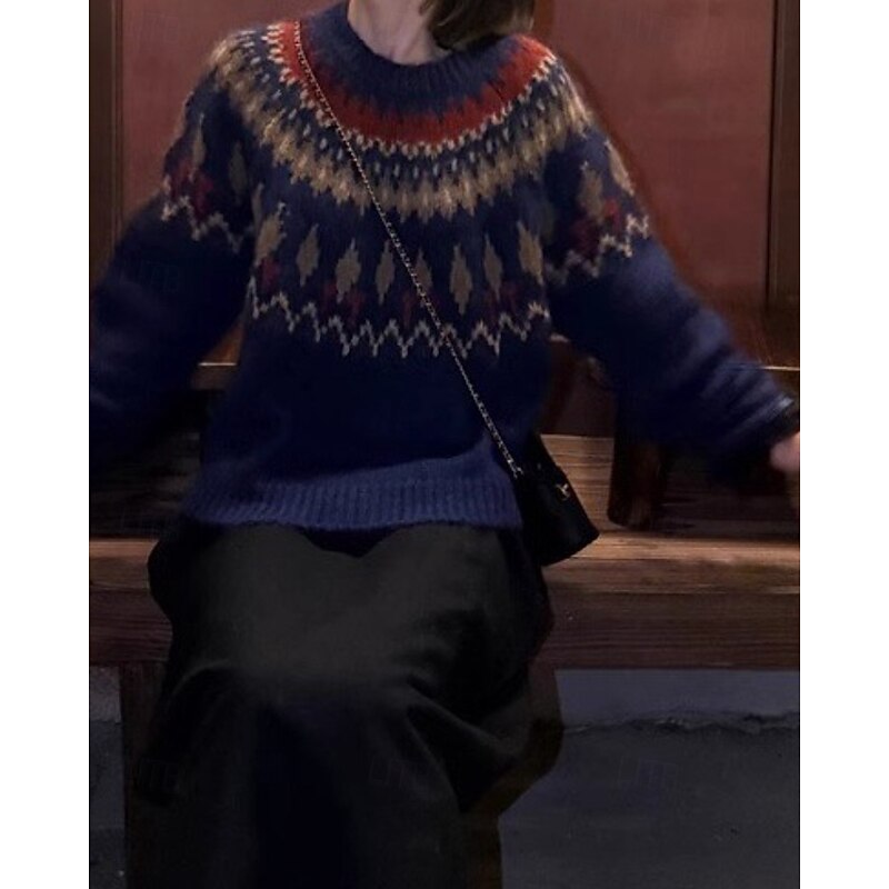 More information about Women's Sweater Pullover Streetwear Casual Floral Crew Neck Knitted Print Long Sleeve Regular Tops Knit Christmas Daily Going out Navy Blue Gray Fall Winter