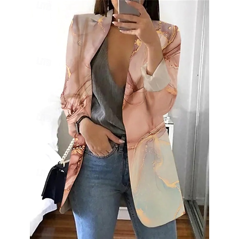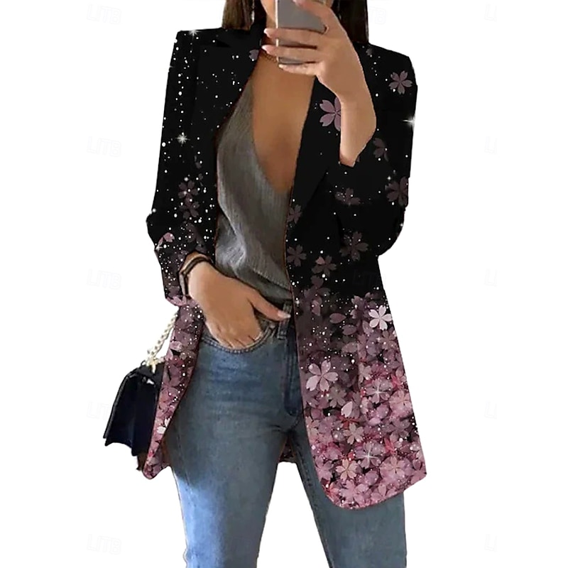 HOT ! Women's Blazer Comfortable Breathable Pocket Open Front Casual Floral Office Street Casual Daily Wear Single Breasted Long Turndown Regular Fit Long Sleeve Outerwear Light Pink Pink Navy Blue Spring