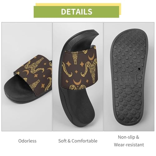 Women Men Slide Slippers Sandals Shower Home Beach House Shoes Gifts, Boho Animal Goat Skull 1