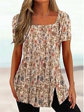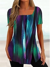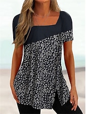 More information about Women's Plus Size T Shirt Tunic Basic Floral Striped Print Short Sleeve Regular Tops Square Neck Casual Holiday Black White Pink Purple Dark Gray