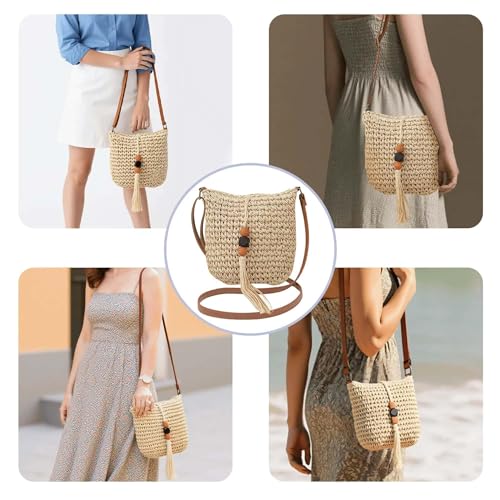 sought-after ! Handwoven Straw Crossbody Bag, Boho Beach Purse, Rattan Wicker Design with Adjustable Strap, Summer Vacation Tassels