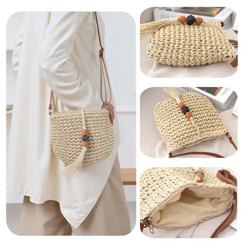 • HANDWOVEN DESIGN: Beautifully crafted straw crossbody bag featuring intricate handwoven patterns that showcase traditional artisanal techniques