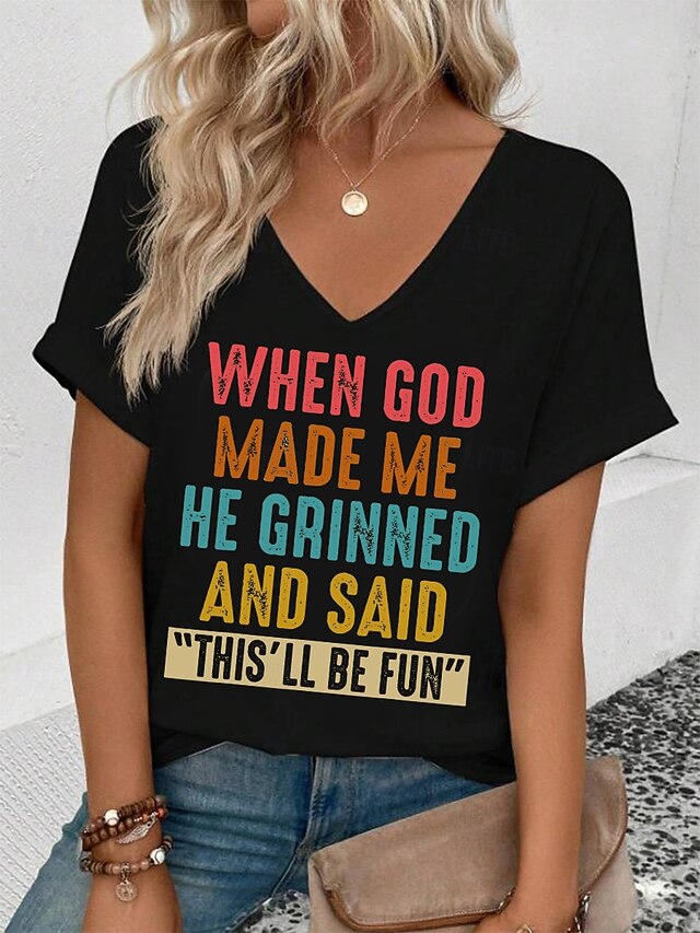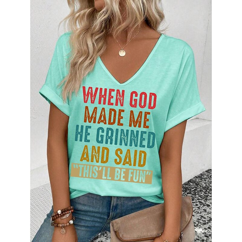This Women's T Shirt Graphic Letter Casual Short Sleeve V Neck Regular Tops Daily Weekend Print Black White Light Green Pink Summer GOD combines elegant design with practical functionality. Every detail has been carefully considered to ensure you get the foremost possible experience. The supreme construction means this product will serve you well for years to come.