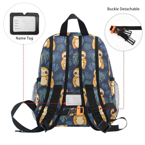 Kids Preschool Backpack-Cute Sloth, Lightweight Schoolbag for Boys Girls with Whistle Name Tag Slot M