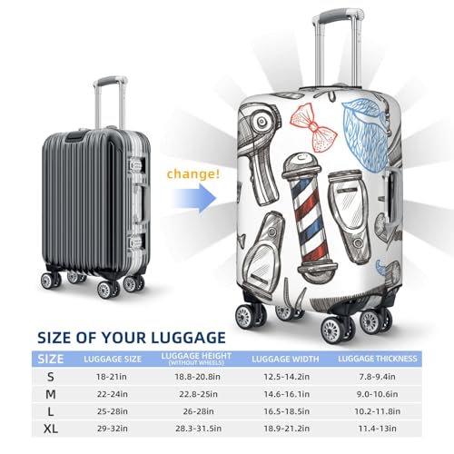 Available In Four Sizes: S (18-21 In), M (22-24 In), L (25-28 In), And Xl (29-32 In). Available In Four Sizes (S, M, L, Xl) To Fit Suitcases Ranging From 18 To 32 Inches, This Versatile Cover Provides Comprehensive Protection Against Dust, Scratches, And Wear.Built With All-Around Double-Stitched Seams, This Travel Luggage Cover Offers Exceptional Durability. The Stitching Ensures That The Cover Stays Securely In Place Throughout Your Journey, Protecting Your Suitcase From Dust, Scratches, AndCrafted From Thick, Elastic Material, The Barber Shop Monochrome Style Print Jbyjbx Suitcase Protector Fits Snugly Over Your Luggage. This High Elasticity Ensures That The Cover Remains Tightly Closed During Transit, Safeguarding Your Suitcase Against Accidental Openings And Potential Damage.Equipped With A Telescoping Handle Hole, Top Carry Handle Hole, And Hidden Zipper Handgrips On Both Sides, This Suitcase Cover Is Designed For Maximum Convenience. The Hidden Zippers Provide Easy Access While Maintaining A Sleek Appearance, Ensuring Your Luggage Looks modern And Protected.Simple To Install Just Pull Up The Handle, Slide The Cover Over Your Suitcase, Expose The Side Handles, Zip Up The Bottom, And Secure With The Fastener. The Washable Fabric Makes Cleaning A Breeze, Keeping Your Cover Looking Fresh For Every Trip.The Barber Shop Monochrome Style Print Jbyjbx Suitcase Cover Features Double-Sided Matching Prints That Add A Unique Touch To Your Luggage. These Stylish And Personalized Patterns Ensure Your Suitcase Stands Out From The Crowd, Making It Easier To Identify At Airports Or Baggage Claims. Perfect for everyday use. excellent materials and excellent craftsmanship ensure long-lasting durability.