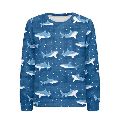 Boys Sweatshirts Long Sleeve Sport Cartoon Graphic Tops Shark Pullover Crewneck Tops Tees Kids 6-16 Years 7