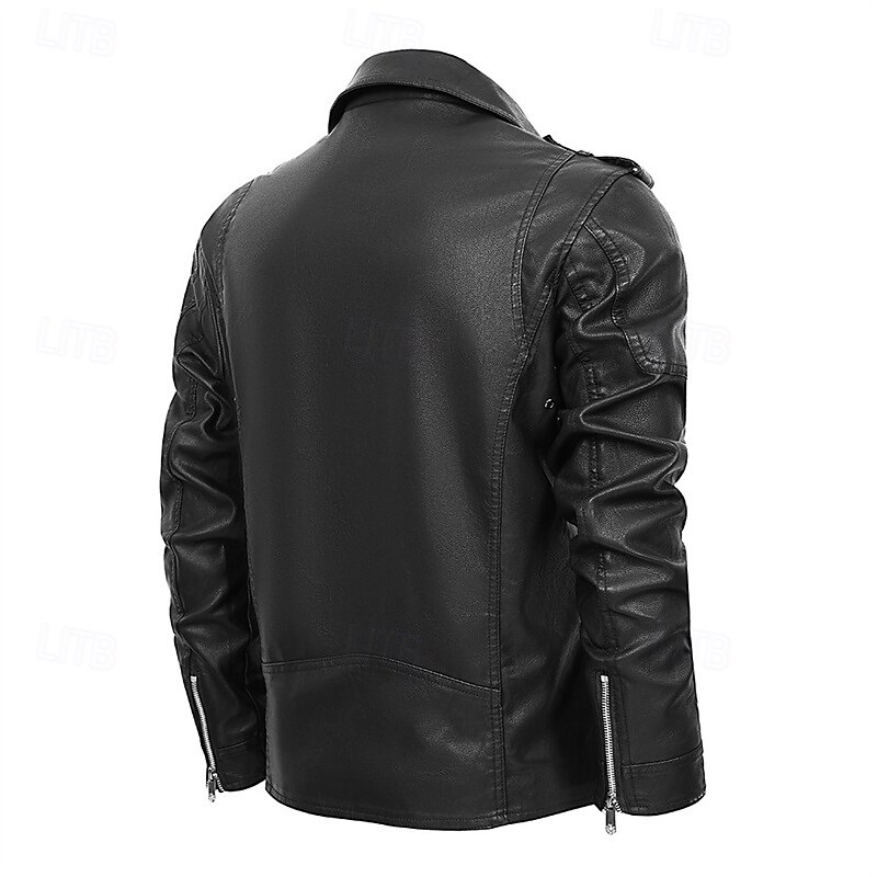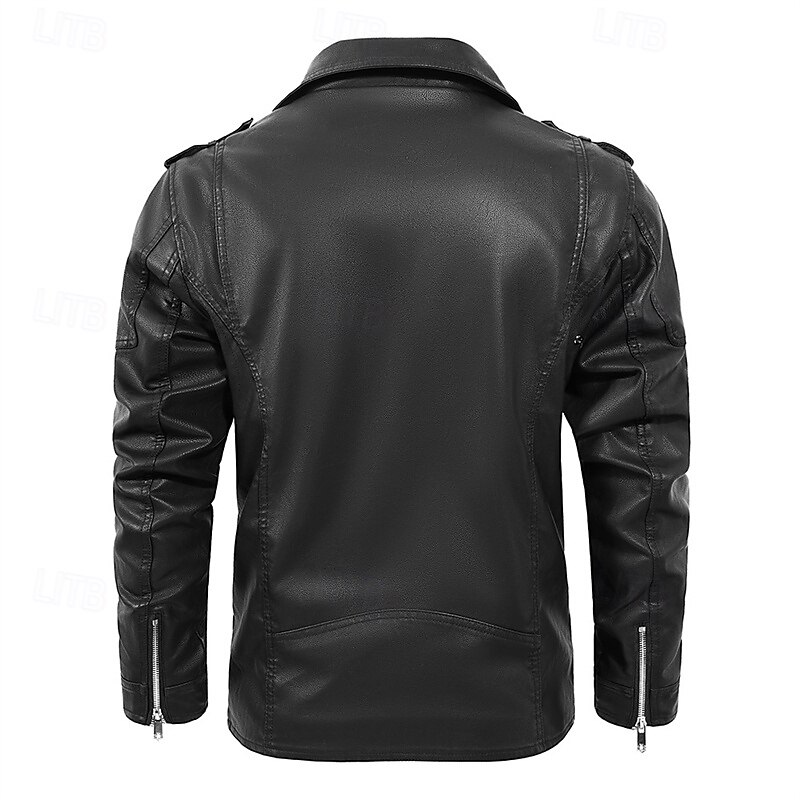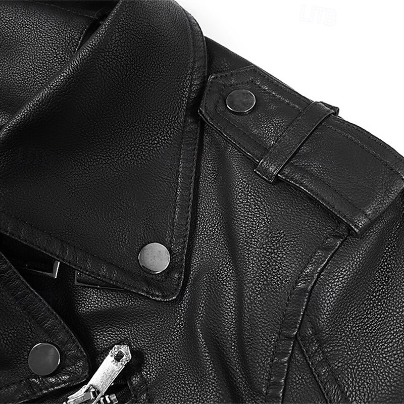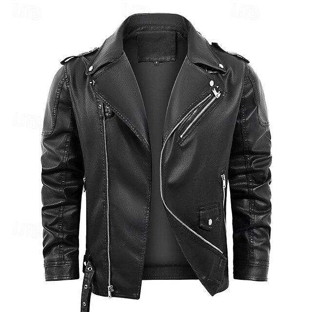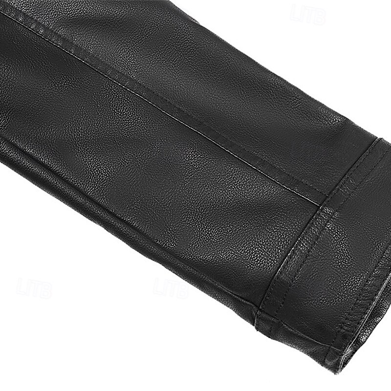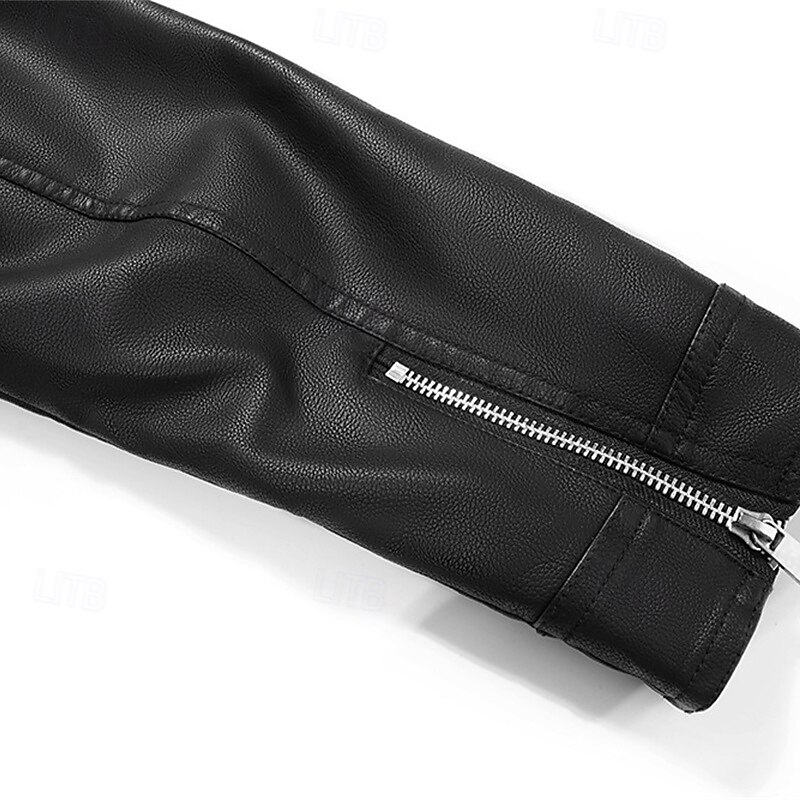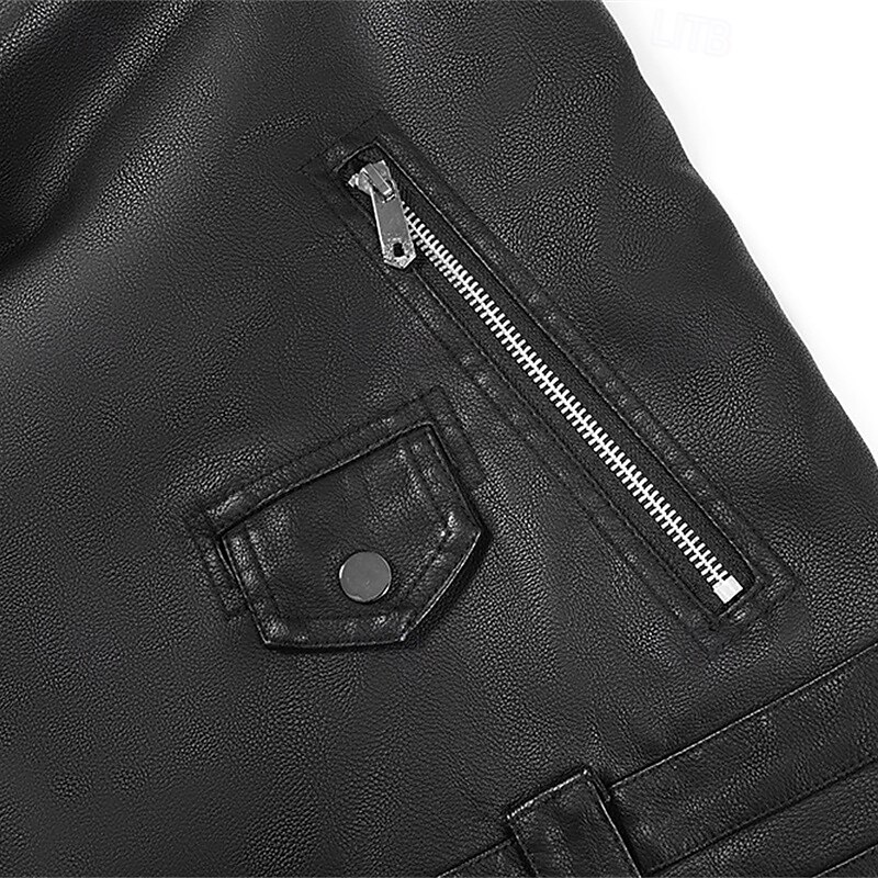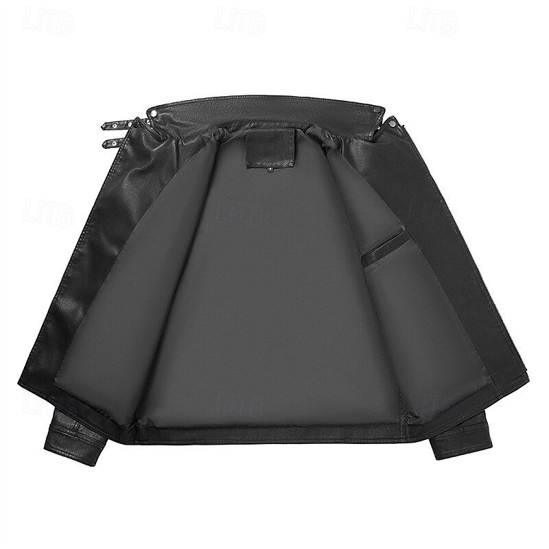 More information about Men's Faux Leather Jacket Biker Jacket Motorcycle Jacket Vacation Daily Windproof Warm Pocket Fall Winter Plain Fashion Classic Stand Collar Regular Black Jacket